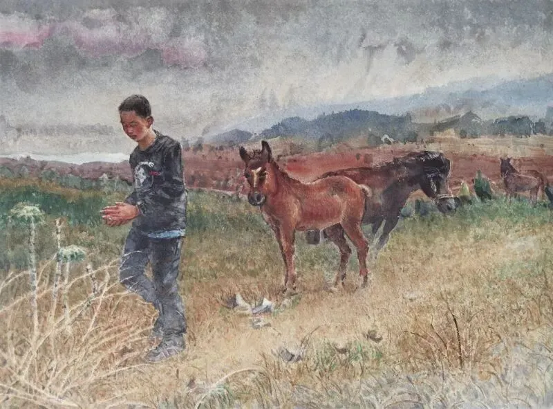 《高原小子》水彩108x80cm