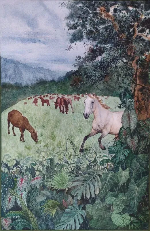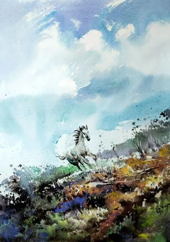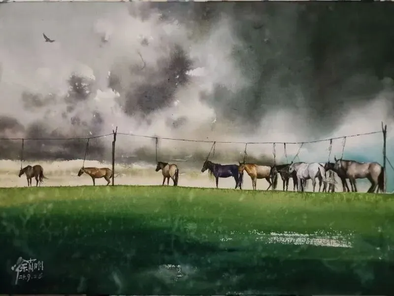 《骏马行峦》水彩46 x 61cm
