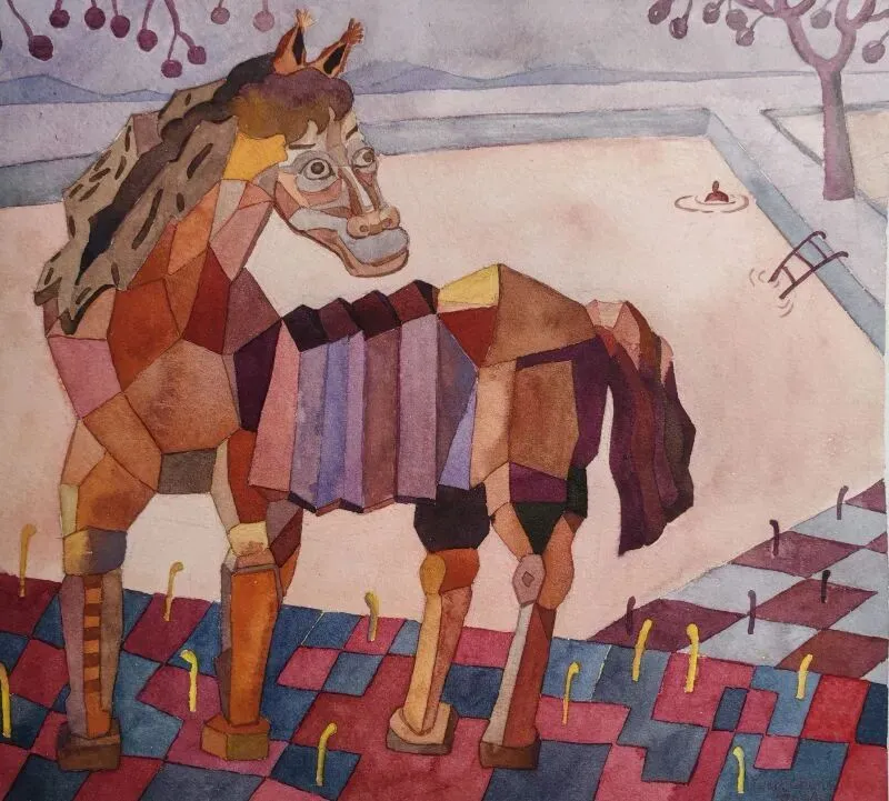 《唐三彩马》水彩26×25cm