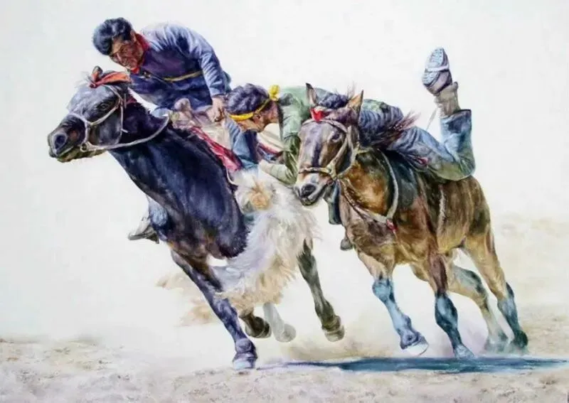 《克族叼羊》水彩76x56cm