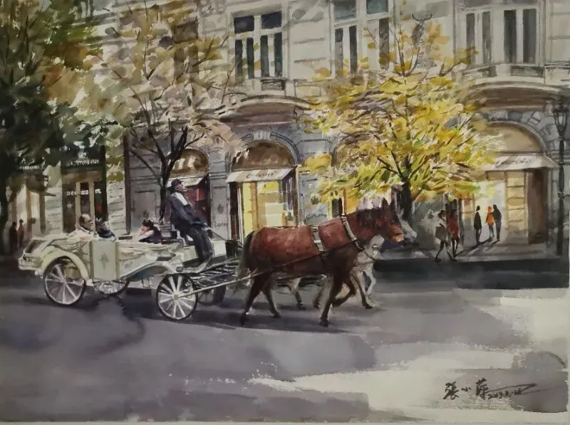 《旋马佣述》水彩 78×110cm