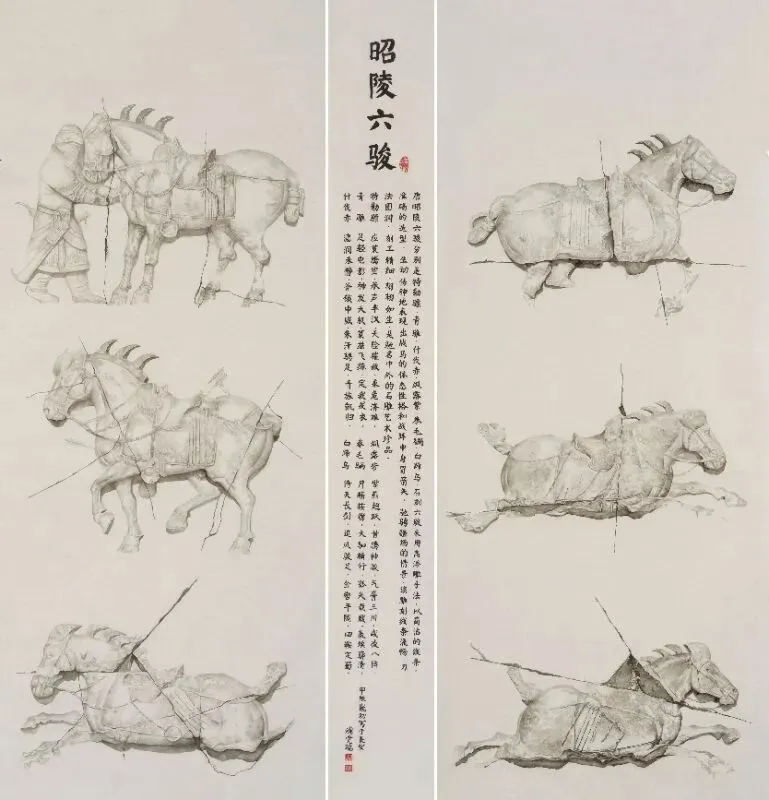《昭陵六骏》国画 165x180cm