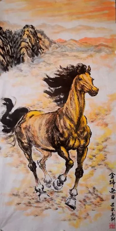 《金蹄逐日》国画50x100cm