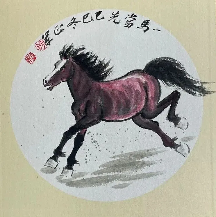 《瑞马呈祥》国画33x33cm