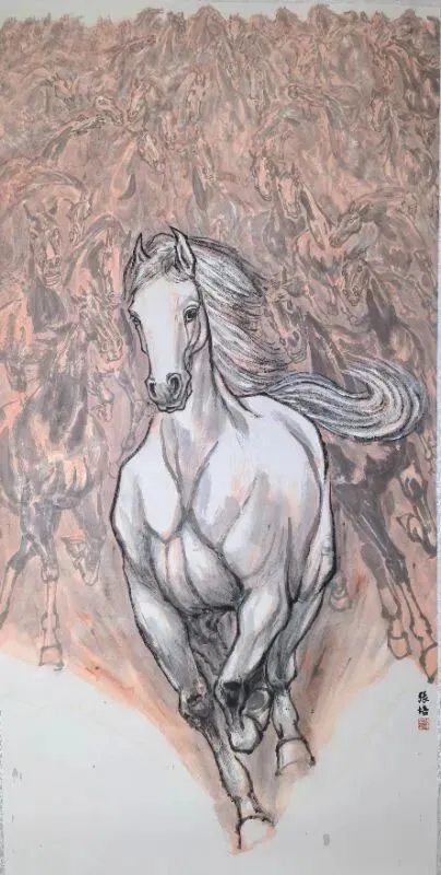 《万马奔腾》国画68x138cm