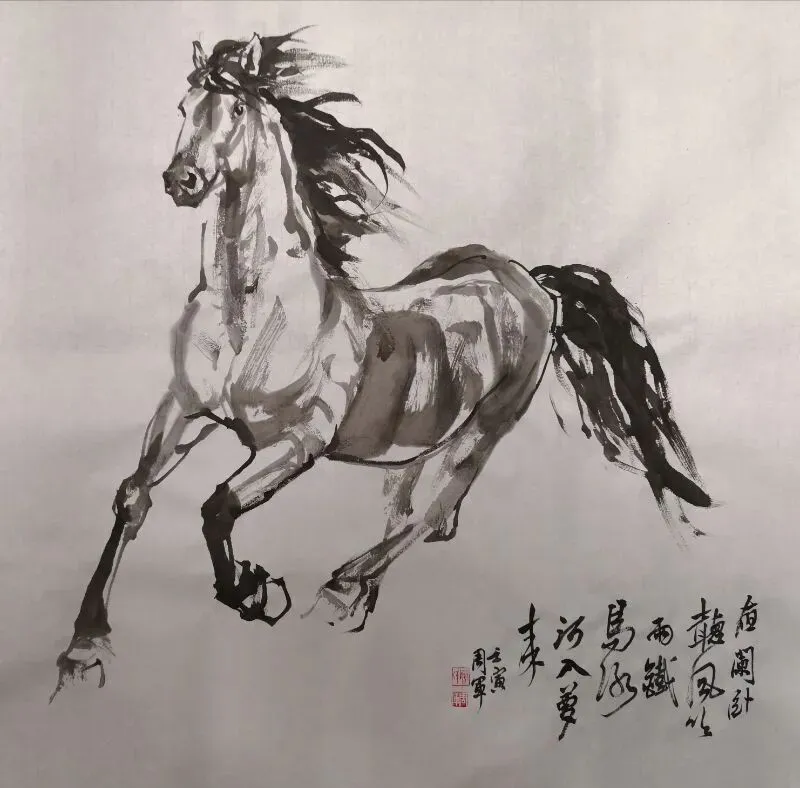《奔马图》国画50x50cm