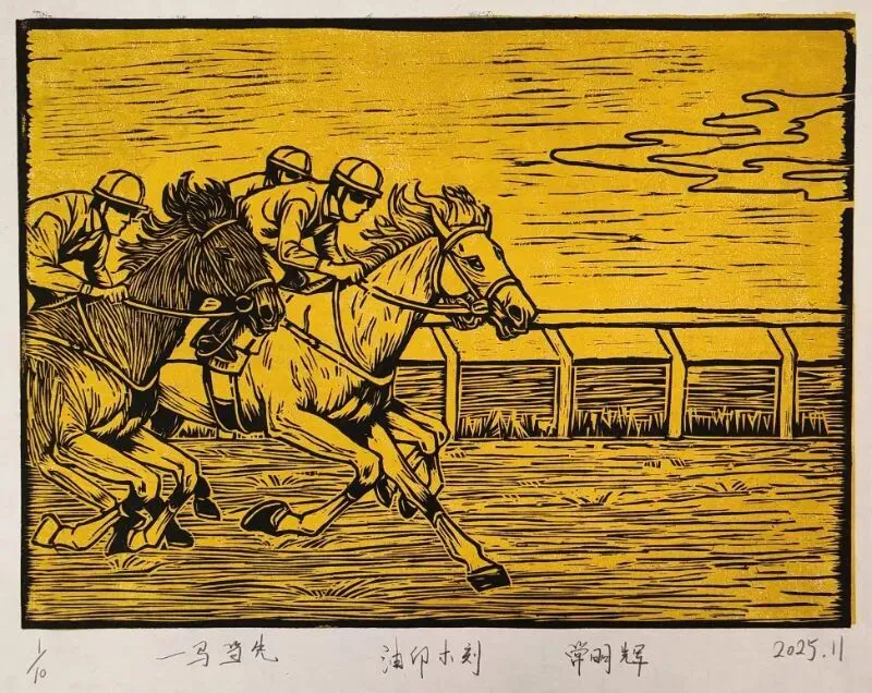 《骅骝开道》水印木刻17.5x11.5cm