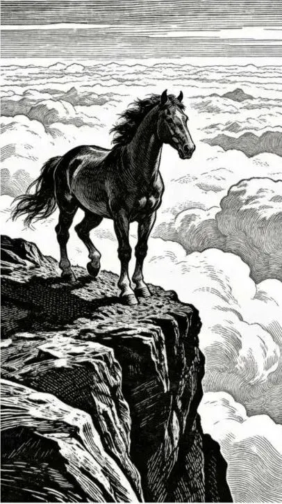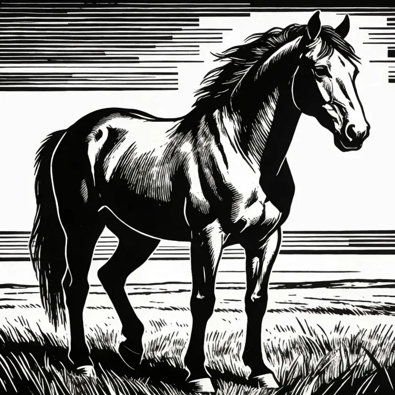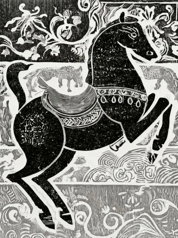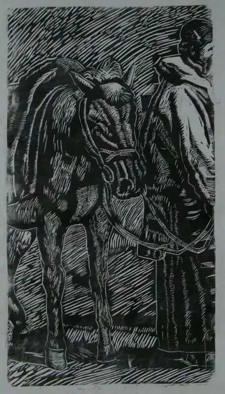《丙午骥》黑白木刻版画30x40cm