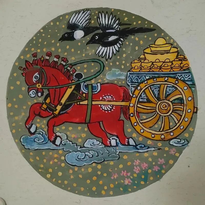 (天马送宝)农民画50x50cm