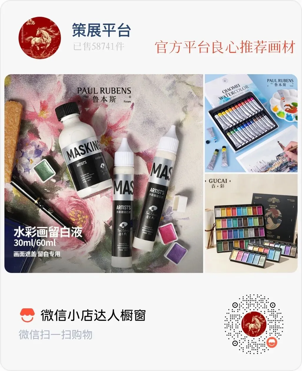 在本次展览大赛期间,开展“录视频·赢大奖活动”,参与者录制一段用鲁本斯颜料(水彩、国画、油画等)或鲁本斯水彩纸创作、写生的短视频,上传抖音或视频号或小红书,统一添加话题#鲁本斯颜料·马年绘骏马,并@分享给鲁本斯官方账号。录制视频时画面要展示出鲁本斯颜料或纸的标识,并在开始录制时说一句语音:策马挥毫·鲁彩流光。组委会根据视频播放量、点赞量,在每一期展览中评选出前3名,按征稿通知奖品类别奖励鲁本斯颜料