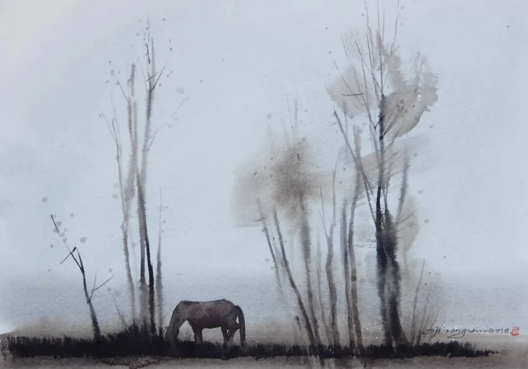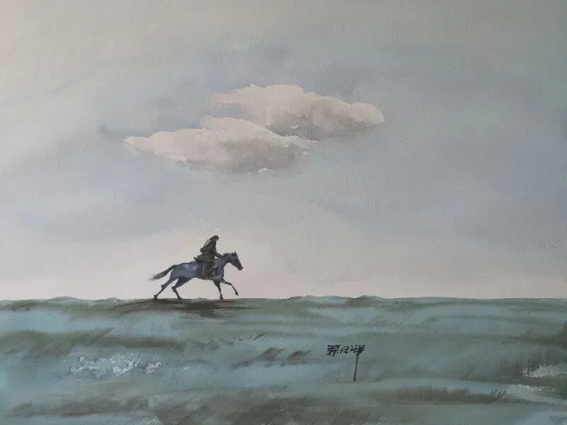 《独行》水彩75X55cm