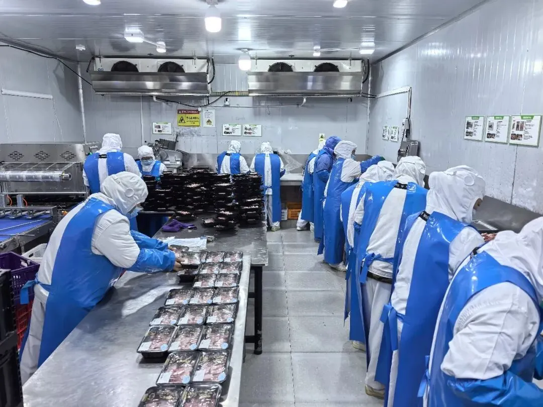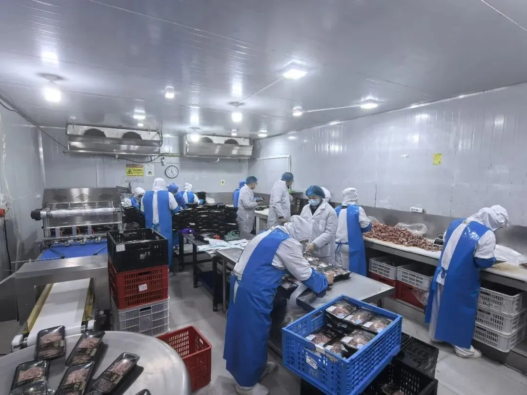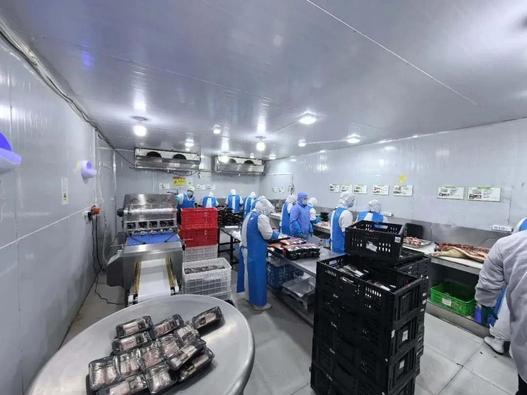 在生产现场,从生猪接收检疫到成品包装,全程实现流水线作业。在包装区,新引进的气调包装系统正精确调控着包装气体和传输线路。“通过传统工艺与现代技术结合,生产效率大幅提升,现在每天可生产5000盒忠州土猪气调冷鲜猪肉,发往重庆中心城区。”企业负责人汪冠军介绍道。