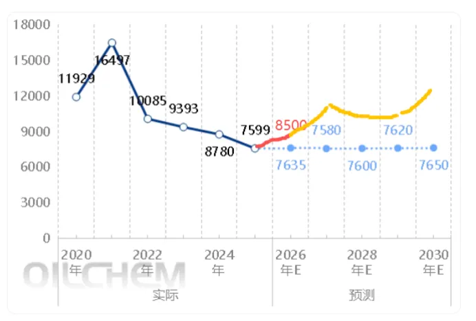 2.环氧丙烷:2024年,量增价跌:产量42.26万吨,销量37.98万吨,均价6582.88元/吨,同比下滑16.16%,营收25.00亿元,主要下半年行业新装置投产导致供应过剩,价格震荡下行,但公司凭借技术优势维持稳定出货 。2025年价格稳定向上,成本下降,2026年1月市场价格8500元/吨。