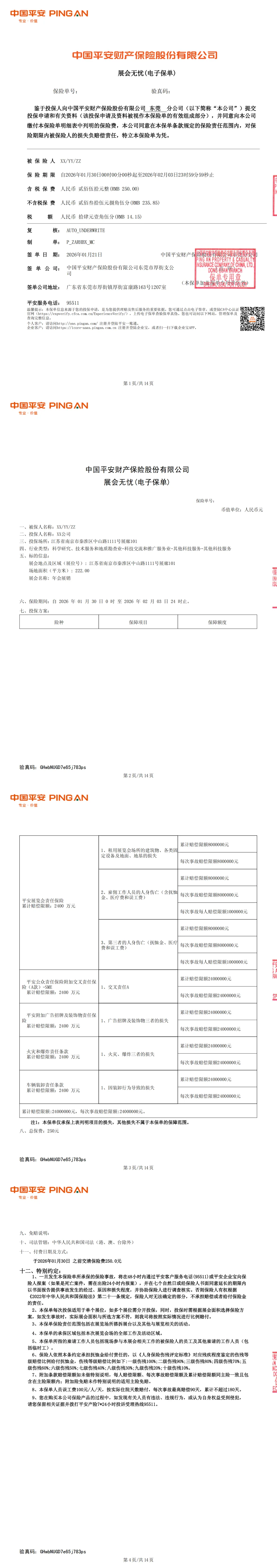 4、本保单的承保区域包括本次展览会场的全部工作及活动区域。
