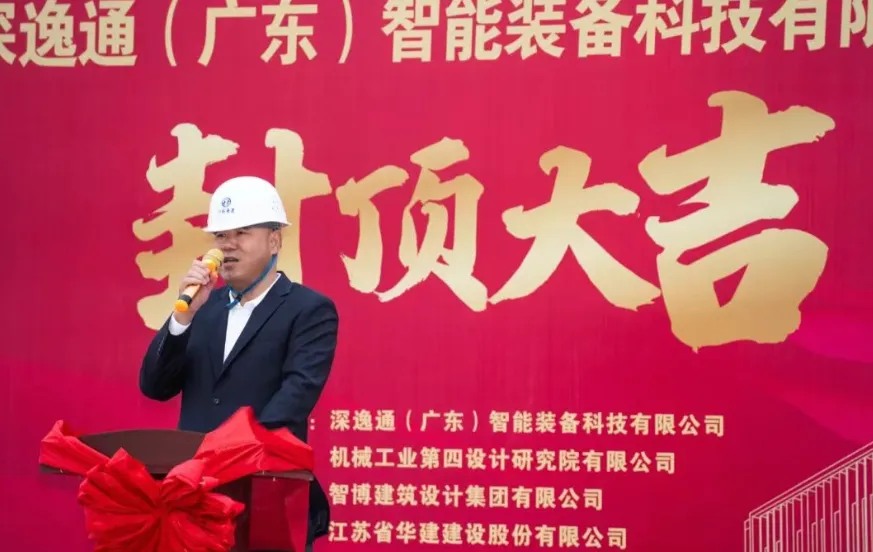 江苏省华建建设股份有限公司珠海分公司总经理韩修浩先生在仪式上发表致辞,韩总表示,深逸通项目是珠海布局高端制造产业的关键一环,此次主体结构封顶,标志着项目建设取得了阶段性重要成果。接下来,华建团队将以更高标准、更严要求投入后续建设,全力打造品质工程、标杆项目,为珠海乃至粤港澳大湾区的产业发展注入强劲动力。
