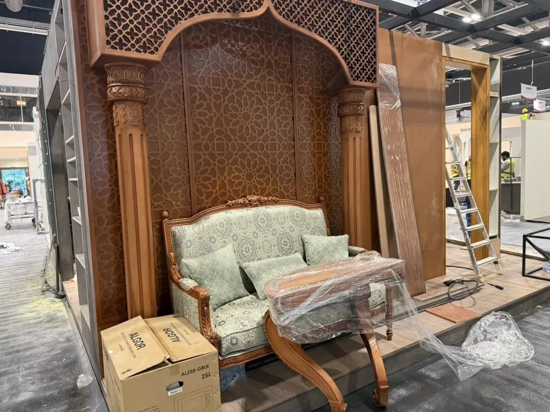 分普通铝型材(左侧)和木质结构(右侧)搭建,木质价格每平米贵40平米,本次展会朗晔展览全部为国内参展商免费升级为木质搭建,以回馈客户的支持。