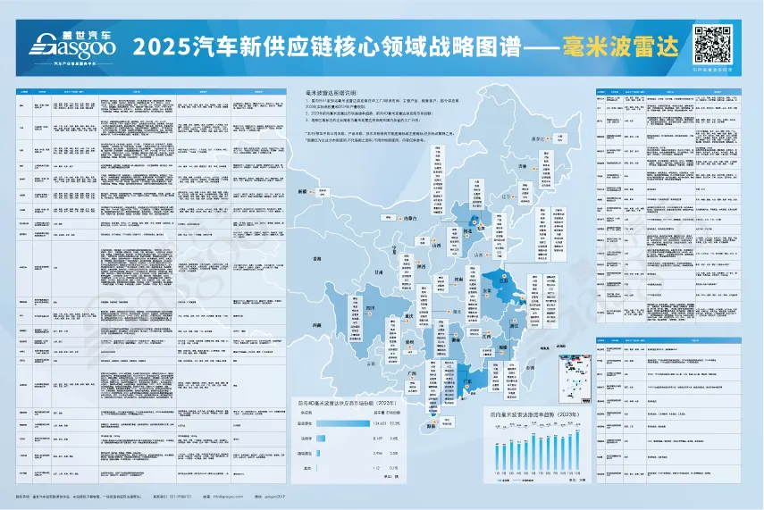 2、地图区域标注的企业名称为毫米波雷达供应商在国内各省的企业分布;