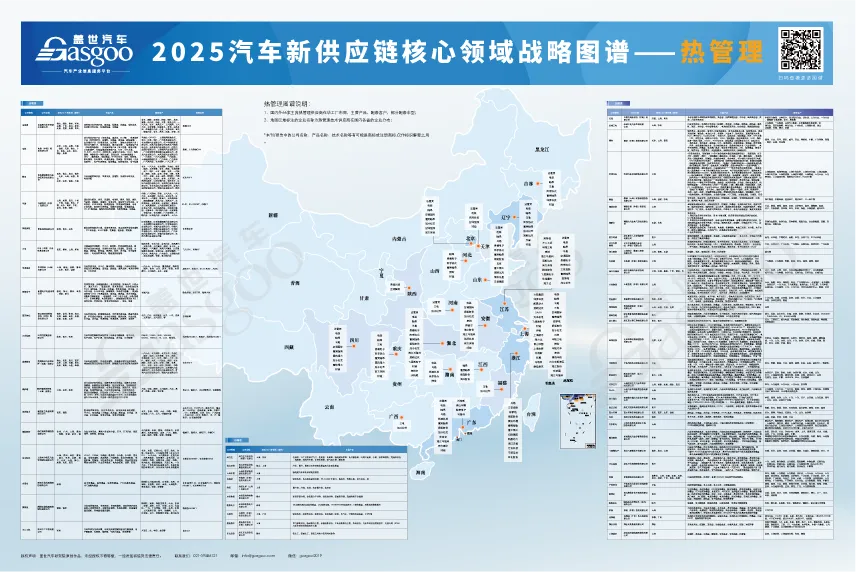 2、地图区域标注的企业名称为热管理供应商在国内各省的企业分布;