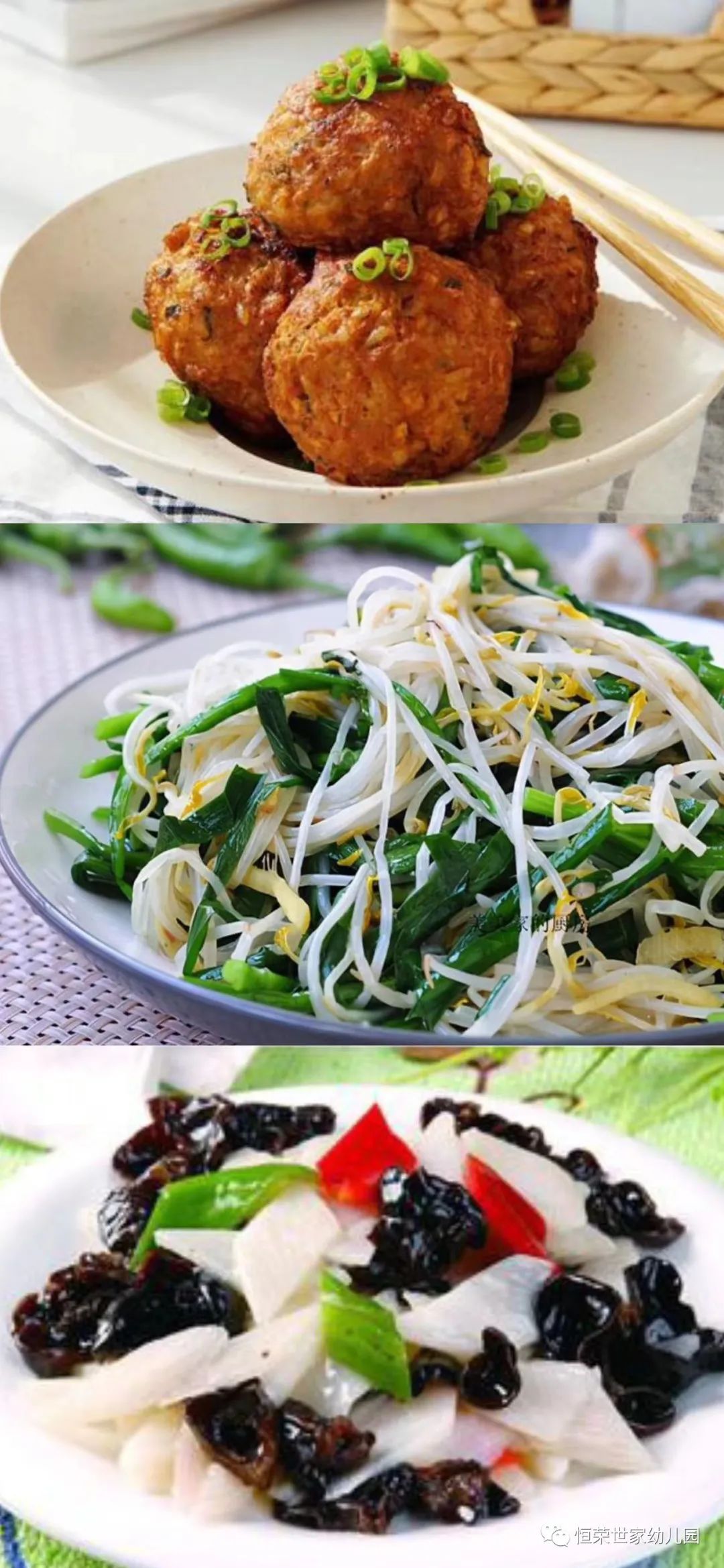 营养午餐: 红烧肉圆 韭菜炒豆芽