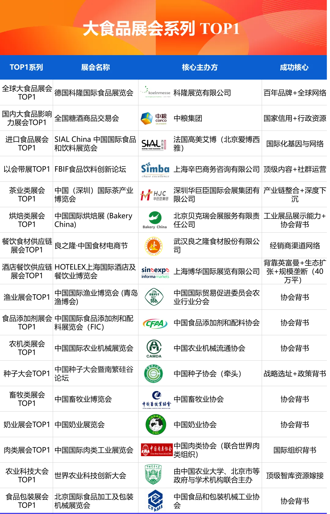高速发展的背后,大食品展会行业的竞争已进入白热化阶段,而头部玩家的突围路径,也逐渐呈现出清晰的共性特征——聚焦 “唯一” 或 “第一”,打造差异化核心竞争力,这已成为行业内头部企业的共同选择。