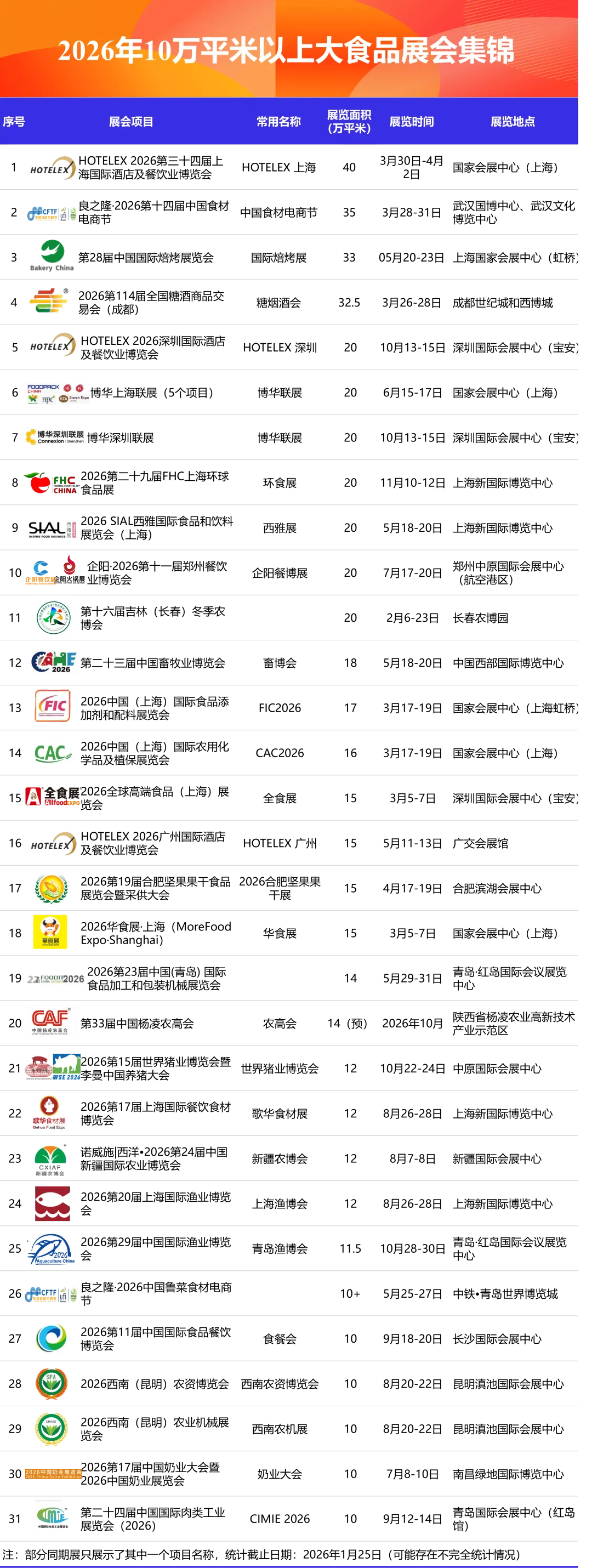 附、2026年10万平米以上大食品展会集锦
