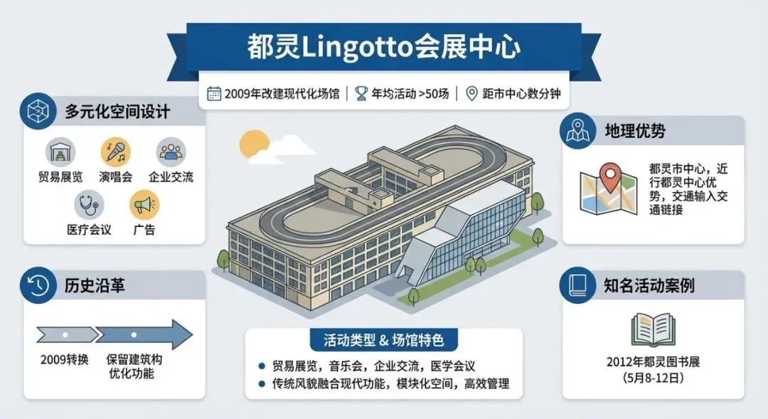 都灵Lingotto会展中心自2009年完成改造后,已华丽转身为集多功能于一体的现代化会展场馆。凭借其优越的地理位置——距离都灵市中心仅咫尺之遥,以及灵活多变的空间布局,该中心每年成功举办超过50场各类活动,成为城市文化与商业交流的重要枢纽。