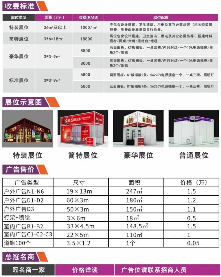 展馆分布:中国名酒展区、中国酱酒展区、葡萄酒及烈酒展区、低度潮饮展区、高端饮料展区、礼品/赠品/福利用品展区、茶叶茶具展区、私域电商展区、综合食品展区、包装及设备展区