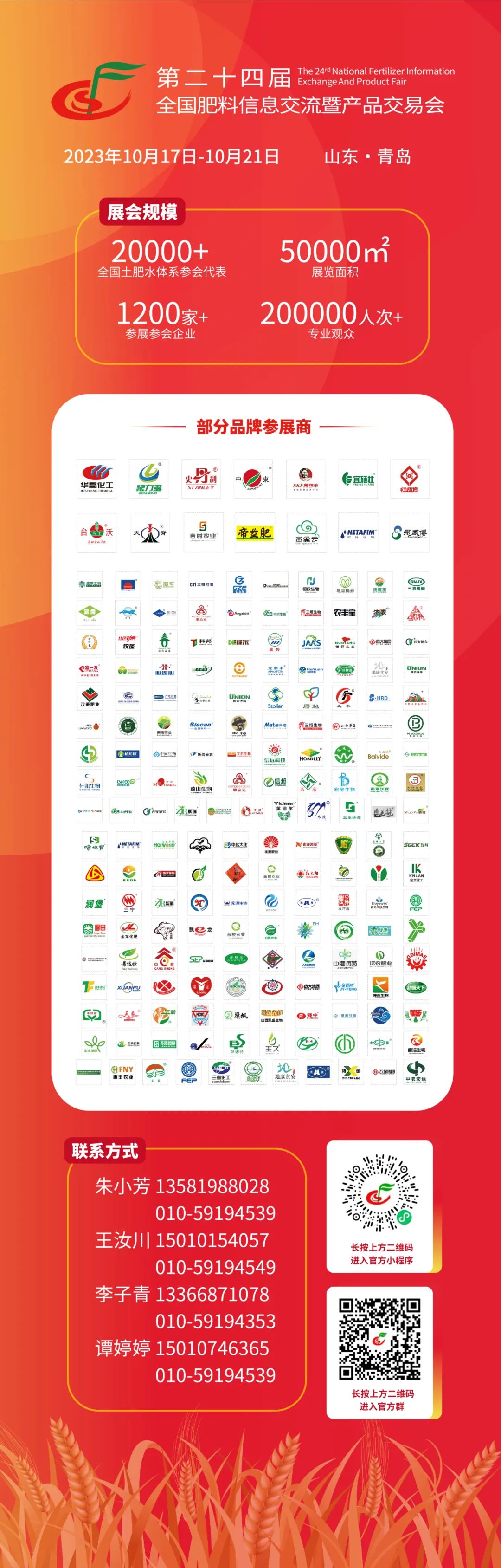 第二十四届全国肥料信息交流暨产品交易会(以下简称“全国肥料双交会”)定于2023年10月17—21日在青岛举办,为持续服务农业绿色高质量发展,积极宣传企业质量管控的先进理念、创新做法和突出典型,肥料和节水农业产品在技术创新、质量提升和减量增效等方面的良好效果,组委会决定开展优秀肥料企业,优秀有机肥料企业,最具成长型企业,优秀新型肥料产品,节水农业与智慧农业先进技术、产品、装备等五大遴选活动。
