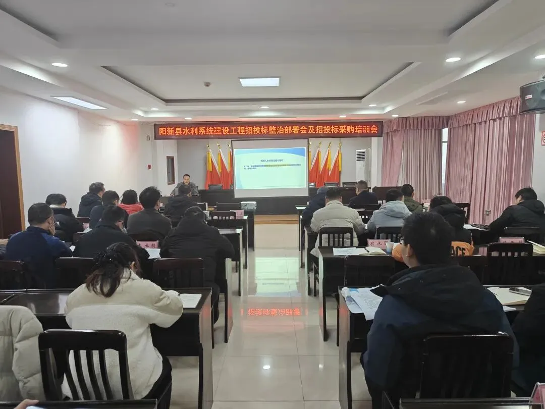 2026年1月29日,阳新县水利系统建设工程招投标暨项目采购培训会在县水利和湖泊局召开,局党组班子、相关负责人及业务骨干等58人参会,柯翔主任主持会议。