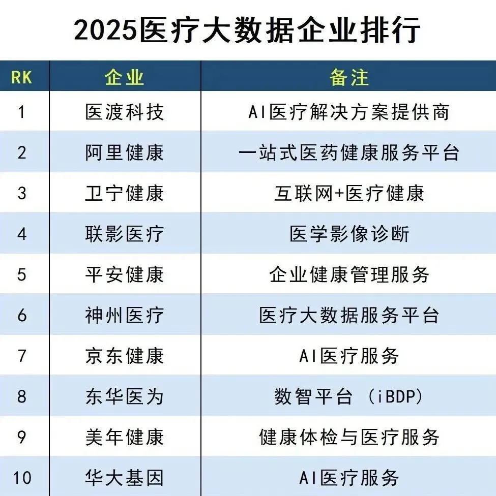 医渡科技:登顶医疗大数据企业排行榜榜首