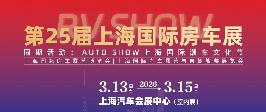 2026年3月13日-15日,第25届上海国际房车展将在上海汽车会展中心盛大启幕!依托“路程网-上海国际房车展”主场优势,展会以“房车+”战略为核心,同期举办AUTO SHOW上海国际潮车文化节,深度整合房车、潮车、配件及户外露营供应链资源,打造覆盖全产业链的专业交流与展示平台。