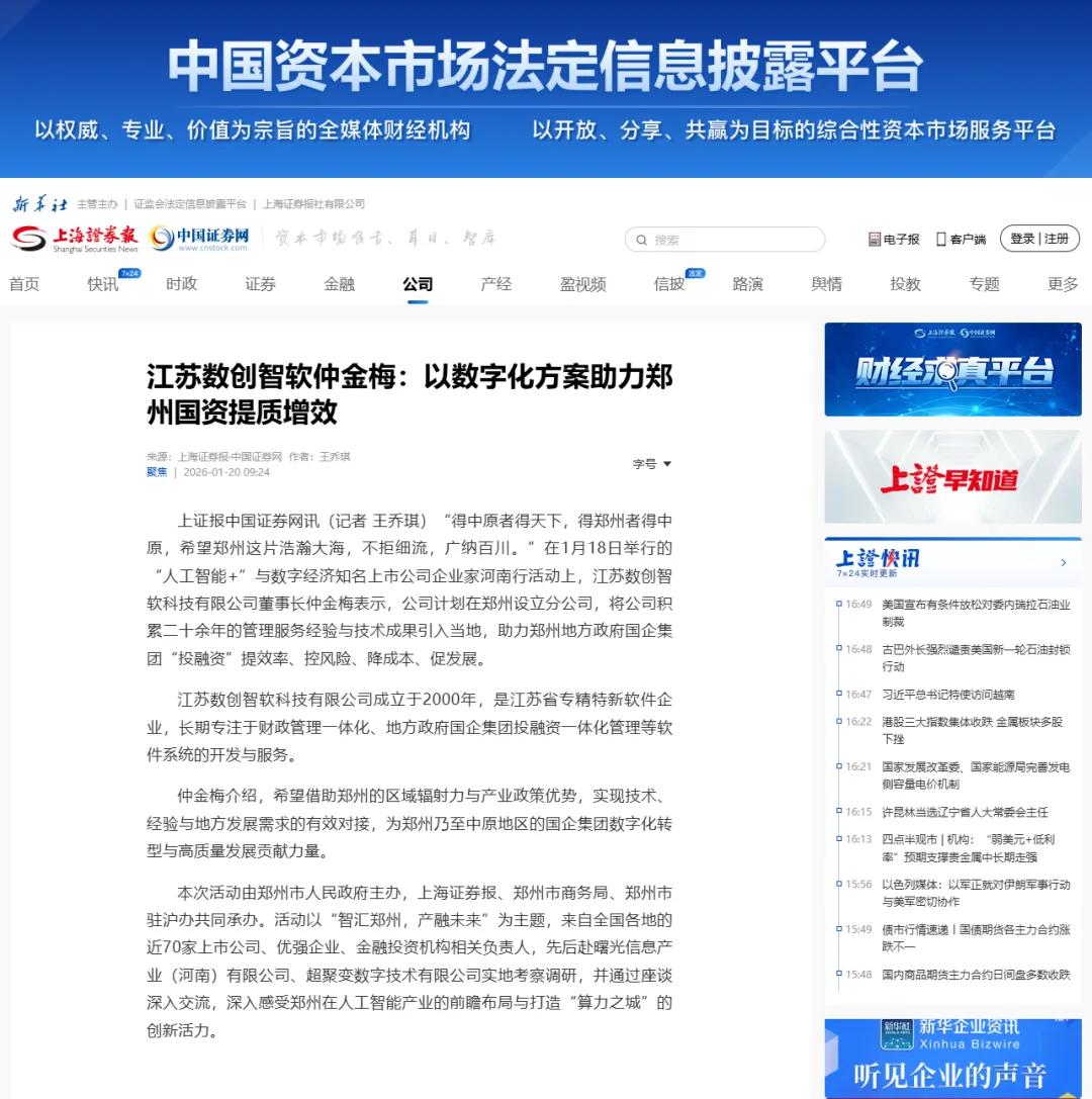 近日,《上海证券报》、《中国证券网》报道,“人工智能+”与数字经济知名上市公司企业家河南行活动由郑州市人民政府主办,上海证券报、郑州市商务局、郑州市驻沪办共同承办。