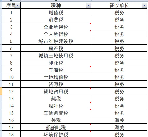 我们国家现行18个税种,给大家列一张表。