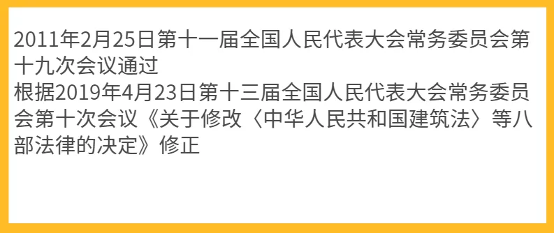2019年8月26日第十三届全国人民代表大会常务委员会第十二次会议通过,自2020年9月1日起施行。2018年12月29日第十三届全国人民代表大会常务委员会第七次会议通过2017年12月27日第十二届全国人民代表大会常务委员会第三十一次会议通过2018年12月29日第十三届全国人民代表大会常务委员会第七次会议通过2017年12月27日第十二届全国人民代表大会常务委员会第三十一次会议通过