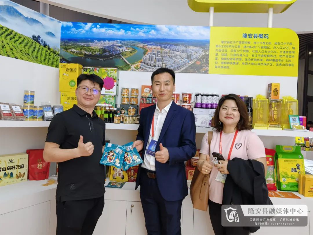 在为期三天的展会上,金穗、永江、昌隆、那之味、那百峰、金玉液、吉事来等7家隆安本土企业共展出20多种产品,包括火龙果、香蕉、香蕉粉、芒果浆、姜粉膏滋、雁江香米、辣椒酱、桑葚果酒、玉草醇酒、豆沙酥等品种,原生态、高品质的“隆安味道”吸引了全国各地的客人,收获了一批“粉丝”。中粮集团挂任隆安县副县长于福才化身“推销员”,积极推广隆安产品,介绍隆安产业优势,引荐各地客商与隆安企业对接交流。