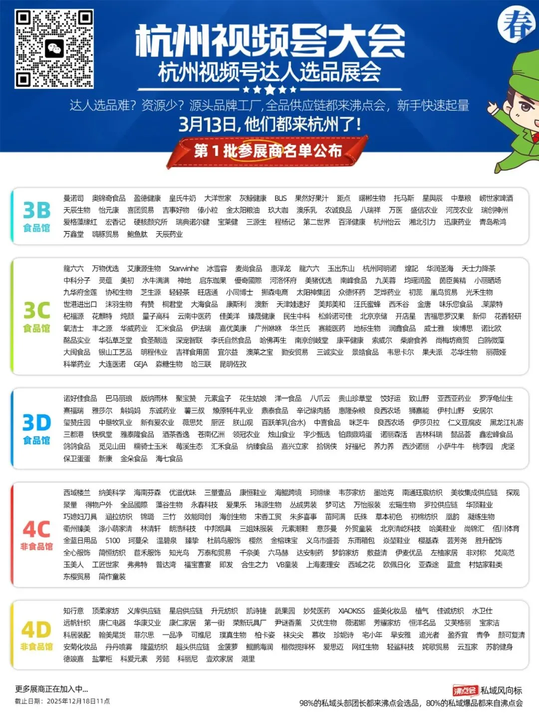 作为私域领域公认的行业风向标,这场展会从不缺重磅惊喜:98% 私域头部渠道早已锁定席位,把这里当作开年选品的黄金阵地;1000 + 优质参展企业同台竞技,带来 10000 + 款新品爆品集中亮相,覆盖全品类爆款商机!