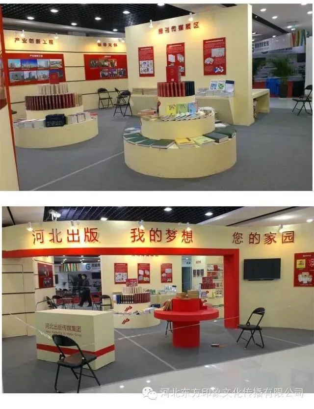 我公司凭借布展经验及多年专业展览展示项目的优势,连续两年接受河北出版传媒集团的委托,全权为其展区展位进行设计、制作和布展安装。 河北省特色文化产品博览交易会在石家庄市新华区英华特色文化城举办,以“打造一流品牌展会、展示河北灿烂文化”为宗旨,在凸显“文化与科技”、“文化与创意”、“文化与旅游”融合发展的同时,将全面展示河北特色文化产业的新形象、新面貌、新产品、新态势。