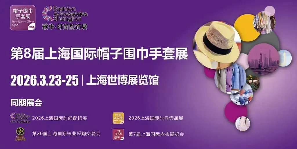 HSGE 2026 第8届上海国际帽子围巾手套展将于2026年3月23日-25日在上海世博展览馆盛大召开。展会自创办之日起,伴随着行业共同成长、发展壮大,展品涵盖了各类:帽子、帽饰、围巾、丝巾、披肩、手套及相关原辅材料和生产设备等产品,同时新增了面罩、袖套、防晒眼镜、防晒服等防晒穿戴配饰,旨在打造出帽子围中手套及防晒穿戴产品的全产业链、全品类、全产地的B2B时尚商贸盛会。