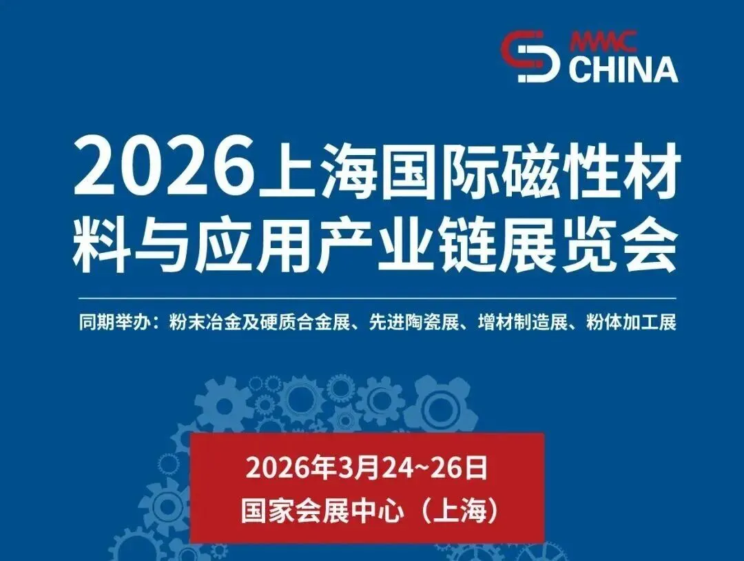 为助力助力磁材行业发展提质增速,2026上海国际磁性材料与应用产业链展览会(MMIC CHINA 2026)将于2026年3月24-26日在上海国家会展中心1.1馆 & 2.1馆盛大启幕!展会汇聚中外优秀企业和业界精英,分享世界领先的前沿技术、创新应用和解决方案,为上下游企业和行业用户搭建技术交流与商贸合作的优质平台,助力磁材行业发展提质增速!