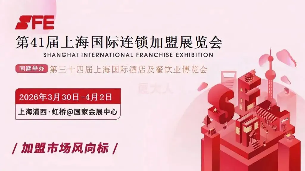 第41届SFE上海国际特许经营及连锁加盟展览会将于2026年3月30-4月2日在上海虹桥国家会展中心隆重举办。展会涵盖餐饮、零售、服务、连锁资源四大板块中的120+市场主流细分业态、预计吸引300+优质连锁加盟代表品牌和70000+国内外专业观众,并深度融合第三十四届上海国际酒店及餐饮业博览会,高效整合连锁行业优质稀缺资源,共同打造2026加盟投资黄金季的行业盛会。推动国内连锁行业健康有序发展。