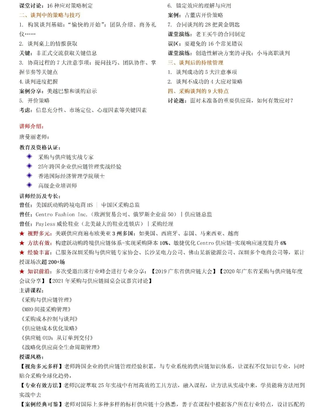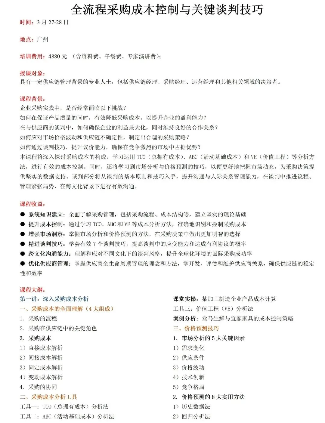《全流程采购成本控制与关键谈判技巧》公开课