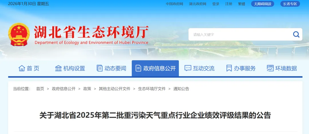近日,湖北省生态环境厅发布《关于湖北省2025年第二批重污染天气重点行业企业绩效评级结果的公告》,全省132家A级、B级和引领性企业中,荆门企业19家。