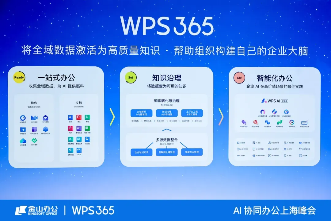 针对企业数据治理需求,金山办公副总裁吴庆云提出了“三步走”实施路径,而WPS 365升级后的智能文档库,正是这一路径的核心载体。