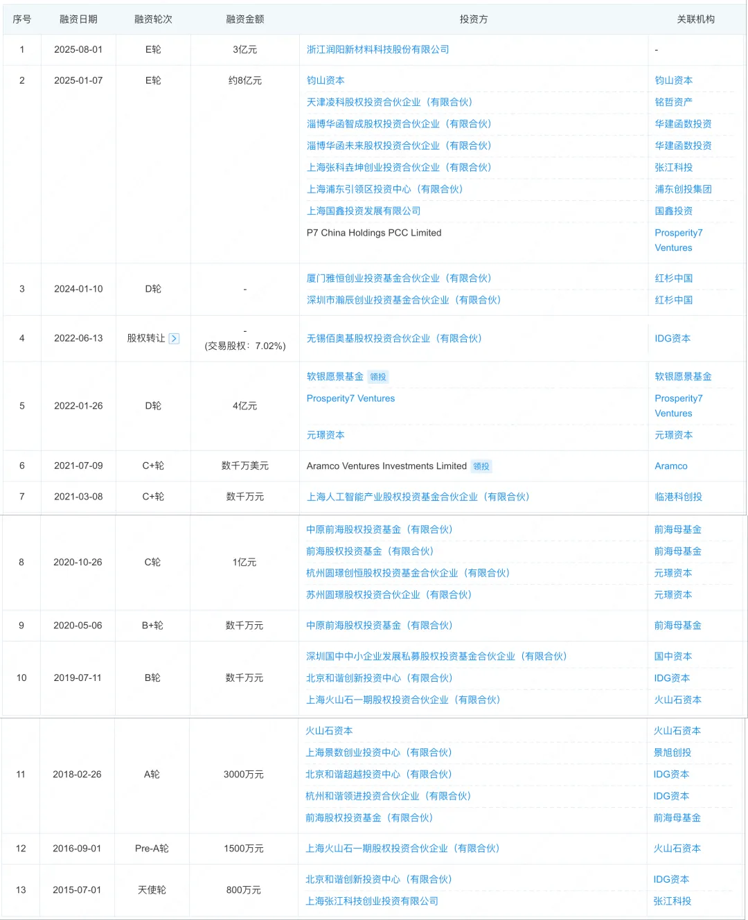 沙特阿美(对应:Aramco Ventures Investments Limited/Prosperity7 Ventures/P7 China Holdings PCC Limited(Prosperity7/Aramco 系);Saudi Arabian Oil Company )