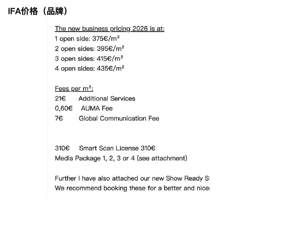 柏林国际电子消费品展览会(IFA)由德国娱乐和通讯电子工业协会(简称GFU)和柏林国际展览有限公司(英文名MESSEBERLIN GMBH)联合主办。该展会是目前世界上规模和影响力最大的消费类电子及家用电器产品展览会之一,是世界各国消费类电子产品生产商和贸易商聚集和展示新产品、新技术的主要平台,也是欧洲消费类电子产品采购商、批发商、零售商了解、采购该领域商品的重要渠道。该展会至2025年已成功举办63届,展会总面积达14万平方米,共有超过2000家展商,展品几乎涵盖所有家电相关产品。