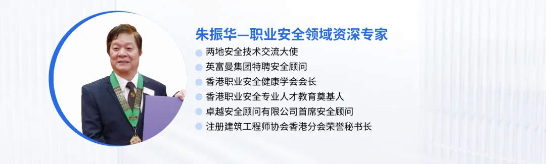 朱振华先生曾任英富曼会展集团安全主任,是香港职业安全领域的资深专家,拥有超过三十年的安全顾问与培训教育经验。他不仅见证了香港职业安全管理的发展,还积极推动与内地的安全技术交流,并以“人人护我,我护人人”为人生座右铭,培养了大量职业安全专业人才,间接地通过教育培训减少安全事故的发生,影响深远。