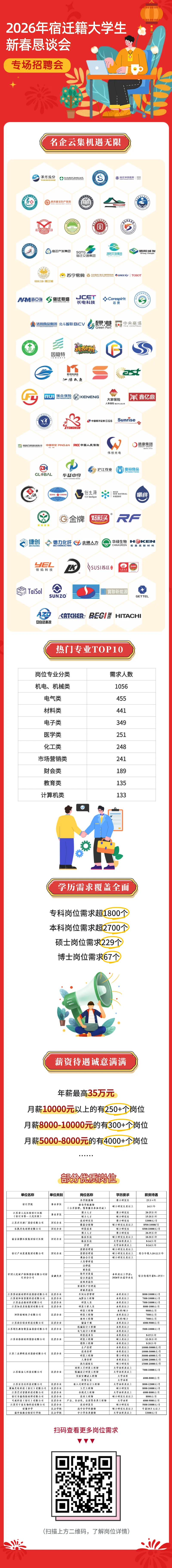 活动现场设置了专场招聘会,目前已经征集了超150家用人单位、近5000个优质岗位,涵盖上市公司、国有企事业单位、产业链重点企业、金融、教育以及医疗机构等不同类型。包含宿迁学院、江苏省人民医院宿迁医院、洋河股份、乐凯光电、新亚强、聚灿光电等一大批企事业单位,涉及化工新材料、新型储能、激光光电、绿色车船、品牌服装家纺、特色和休闲食品、大数据、电子信息、低空制造等多个重点产业链。