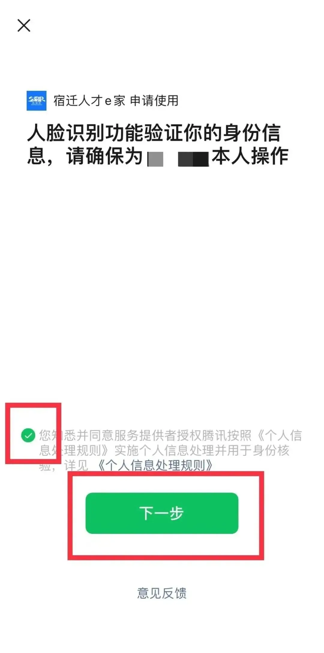 填写姓名与身份证号,完成人脸识别验证。