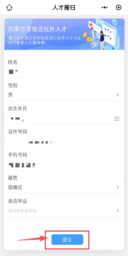 点击进入“人才雁归”板块,仔细填写并提交个人信息。
