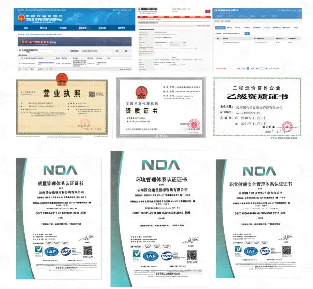 云南国合建设招标咨询有限公司,成立于2006年3月21日,拥有工程招标代理甲级、中国(云南省)政府采购代理备案、工程造价乙级资质。在职员工42人,其中一级造价师3人、一级建造师3人,注册咨询师1人、注册监理工程师1人,高级工程师10人。